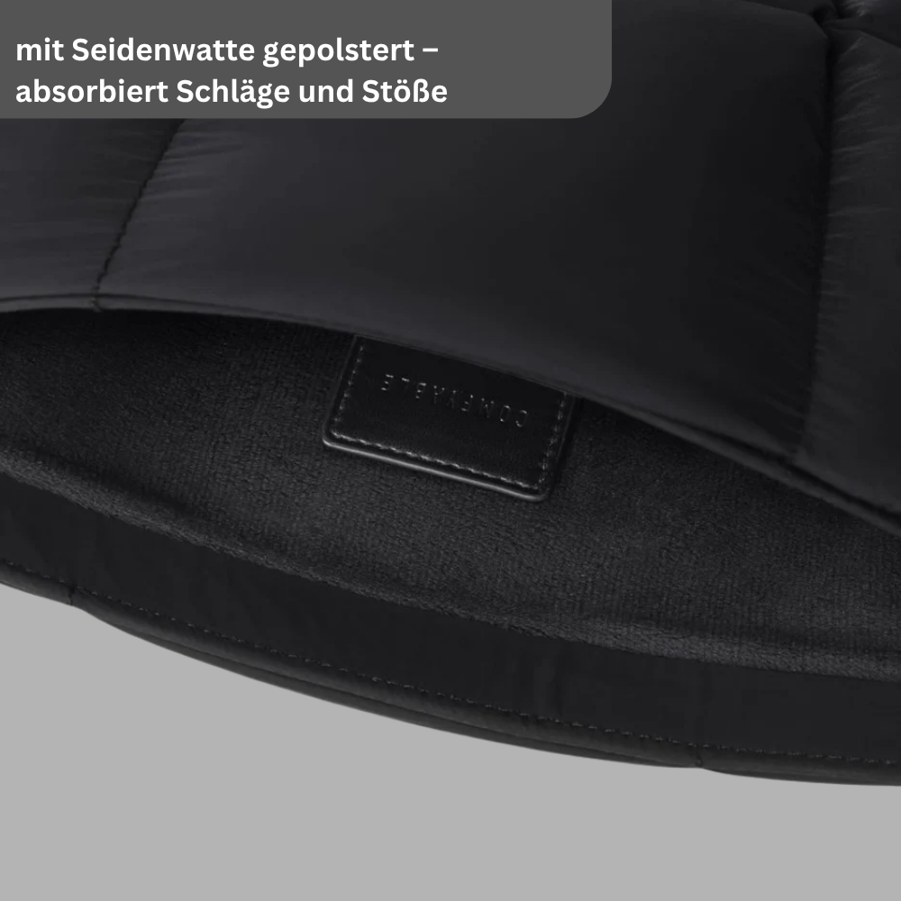 Soft Puffy schützt deinen Laptop smarter: stoßdämpfend, wasserabweisend, seidenweich gefüttert – und dabei stilvoll wie keine andere Tasche.