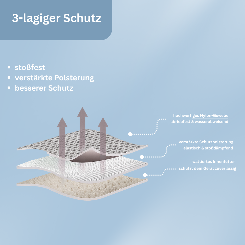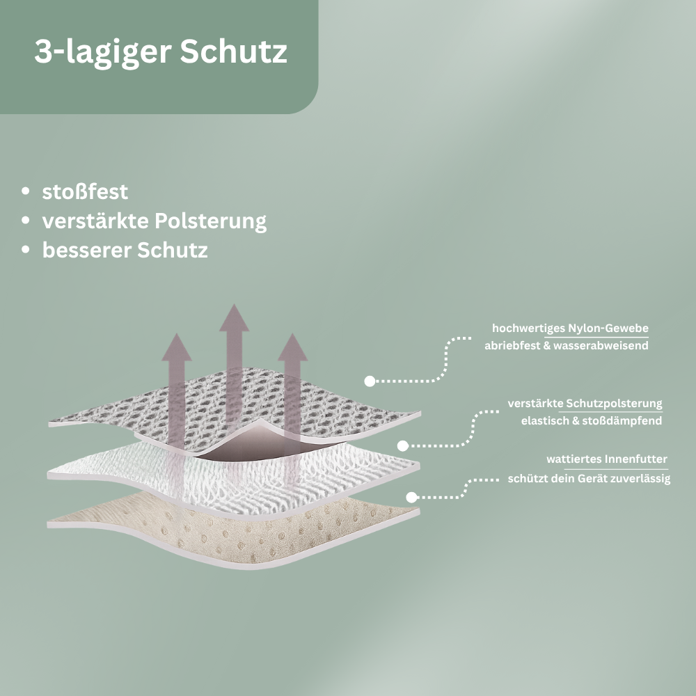 Die seidenweiche Wattierung absorbiert Stöße zuverlässig, ohne aufzutragen. Dein Laptop ist bestens vor Kratzern und leichten Erschütterungen geschützt und ist trotzdem slim im Look.